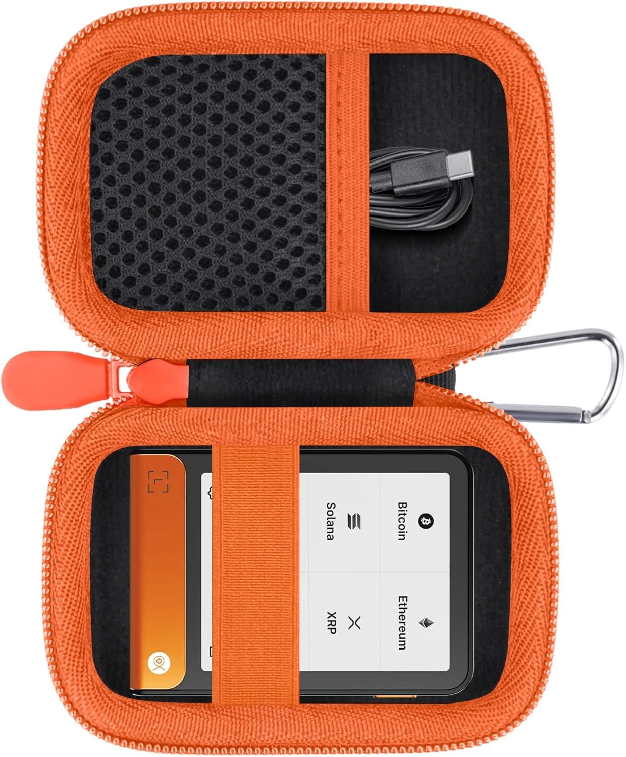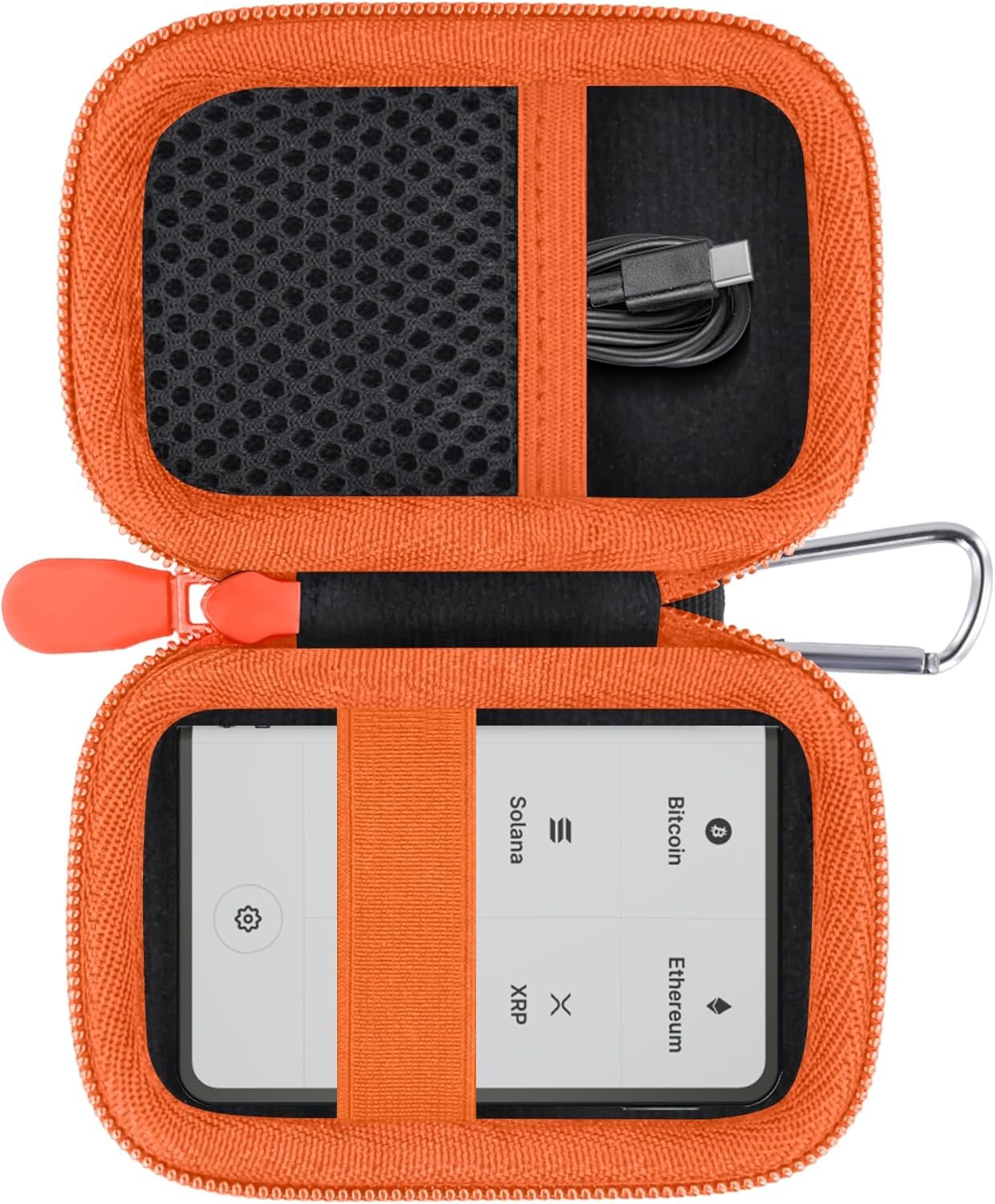 This travel case for ledger flex/stax e ink wallet is made of high quality EVA material, which can effectively protect the ledger flex/stax bitcoin crypto wallet from external influences. Equipped with mountaineering buckle on the outside, so it is very convenient to carry when you go out.
