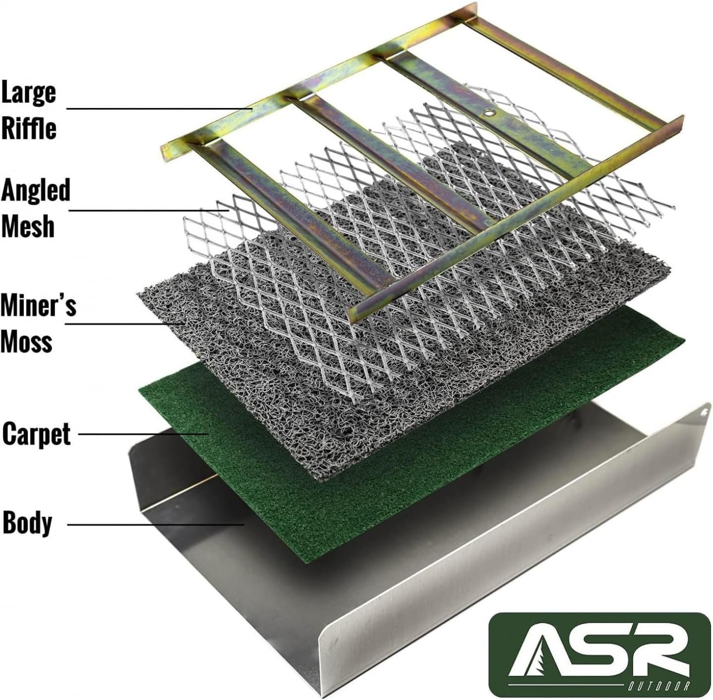 50 INCH FOLDING SLUICE BOX: This aluminum sluice box features built in 18 gauge steel zinc-plated riffles, carpet and woven vinyl miners moss; Sluice box easily fits into included canvas rucksack or 5 gallon bucket; no assembly required and includes shoulder strap