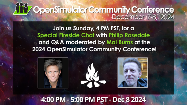 Second Life founder Philip Rosedale is coming to OpenSim tomorrow, Sunday Dec. 8, at 4 p.m. Pacific Time for a fireside chat at the OpenSimulator Community Conference.