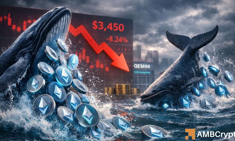 - Whale activity created significant selling pressure near Ethereum’s $3,450 resistance, influencing key market reactions.