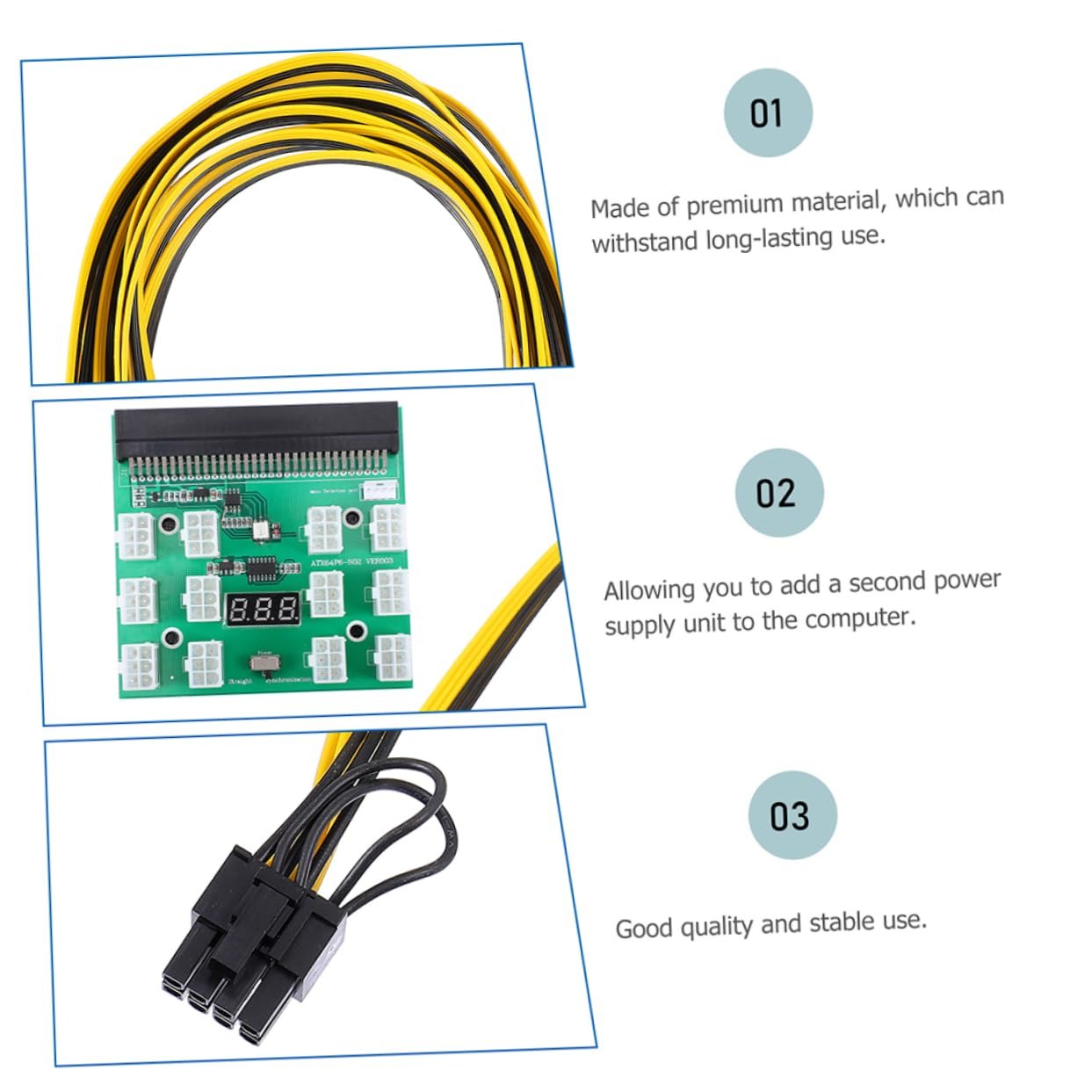 GPU Power Board It is not easy to get deformed and bring you much convenience.Mining Board Adapter Adopted of , it is and for long time use.Graphic Card Power Cable That's because our product can meet your need.6Pin to 8Pin Cable If you are looking for a professional and GPU mining power supply kit, then your research is over here