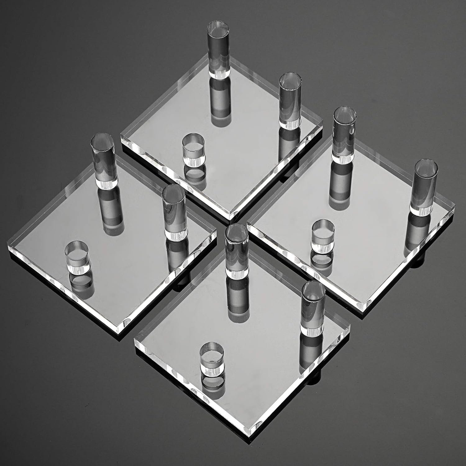 1-Pack Square Base 8-Pack Square Base 5-Pack Pointy Triangle 10-Pack Chair Style 12-Packs Acrylic Easel Stands 4-Pack Solid Acrylic Display Blocks