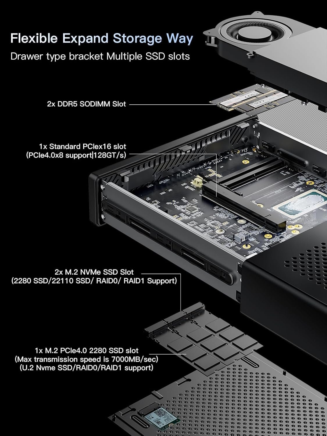 【Flexible Expandability】This Workstation equipped with two DDR5-5200 slots + M.2 2280 PCIe4.0 SSD slot. This SSD slot compatible with RAID0 and RAID1, supports U.2 SSD. U.2 enterprise-grade solid-state drives can easily achieve larger capacities, reaching 7.68 TB/15.36 TB or more on the same four PCIe channels. With two more M.2 NVMe SSD Slots(compatible with M.2 2280 SSD/enterprise class 22110 SSD/RAID0/RAID1), you can store movies, videos, photos, important files easily. What’s more, it also comes with 1x standard PCIex16 slot(PCIe4.0x8 compatible|128GT/s), you could also expand the graphics card — RTX 3050(TESTED).