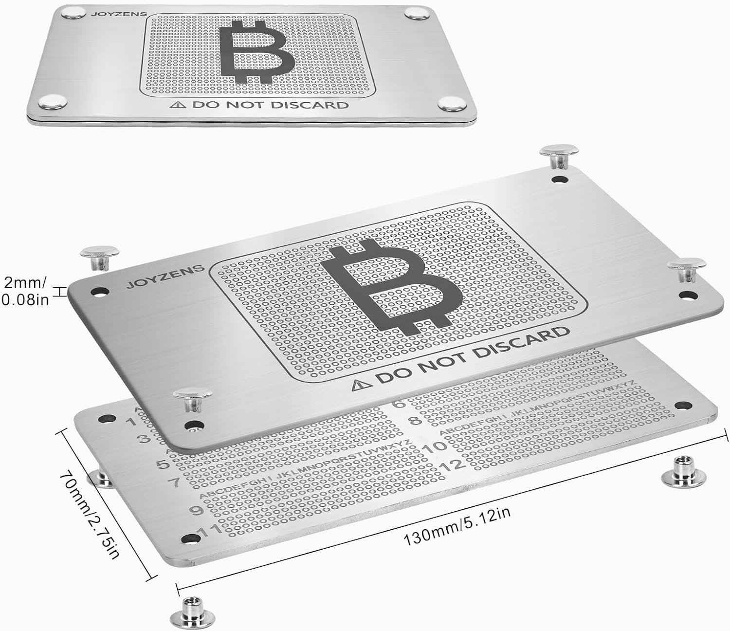 Built for Generations Crafted from corrosion-resistant stainless steel, this JOYZENS seed phrase storage solution delivers lasting protection with center-punched markings that remain legible for decades, enduring harsh conditions in cold storage crypto wallet systems.